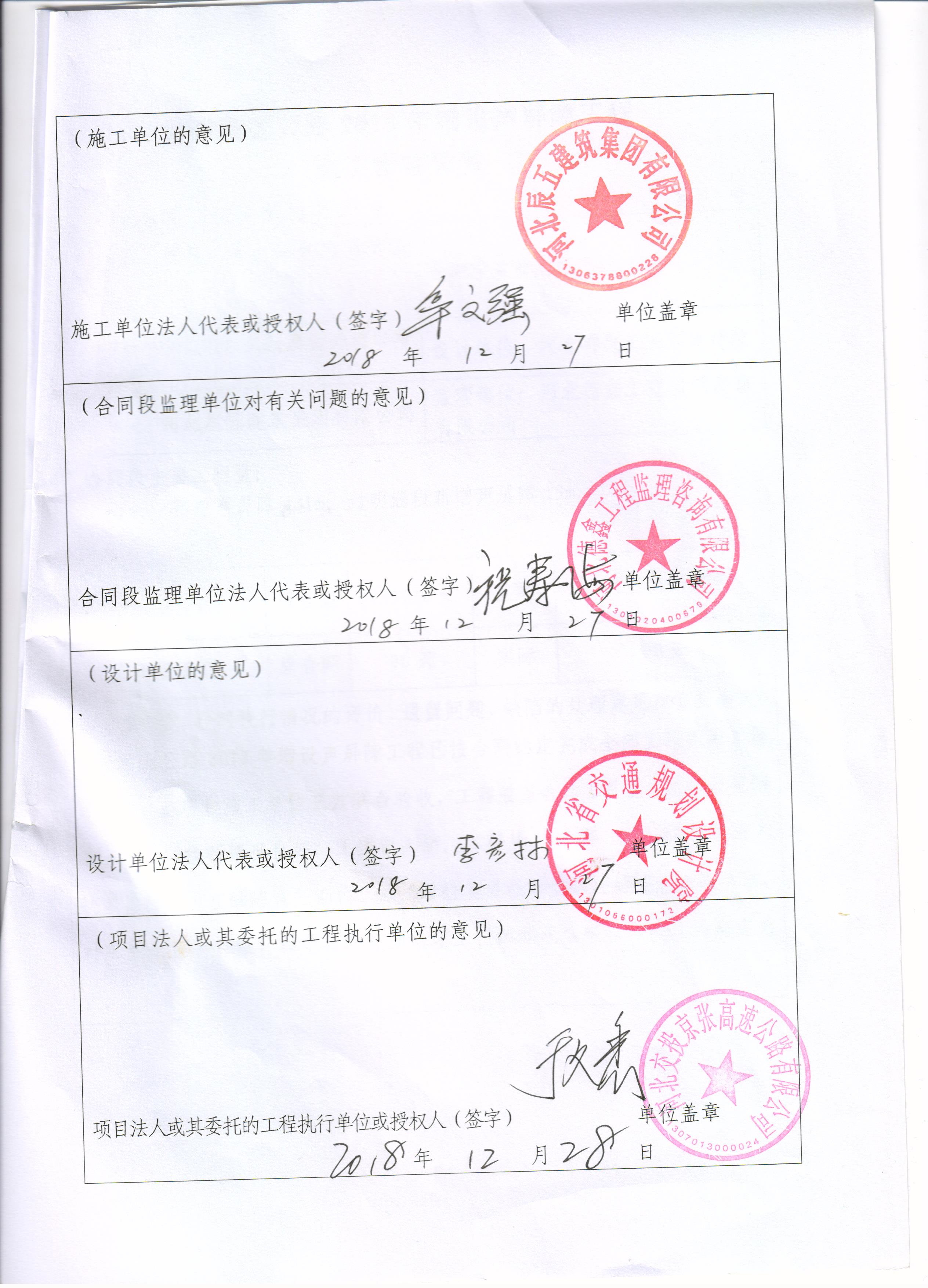 京張高速公路2018年增設(shè)聲屏障工程交工驗(yàn)收證書(shū)